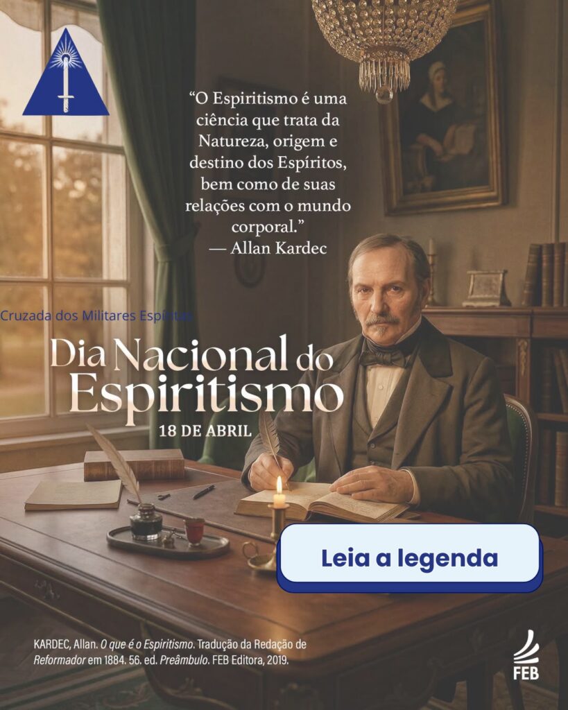 Dia Nacional do Espiritismo 18/04/202622/04/2026 Carlos Acesse a matéria no Instagram. Conheça a Biblioteca virtual da CME – Clique aqui