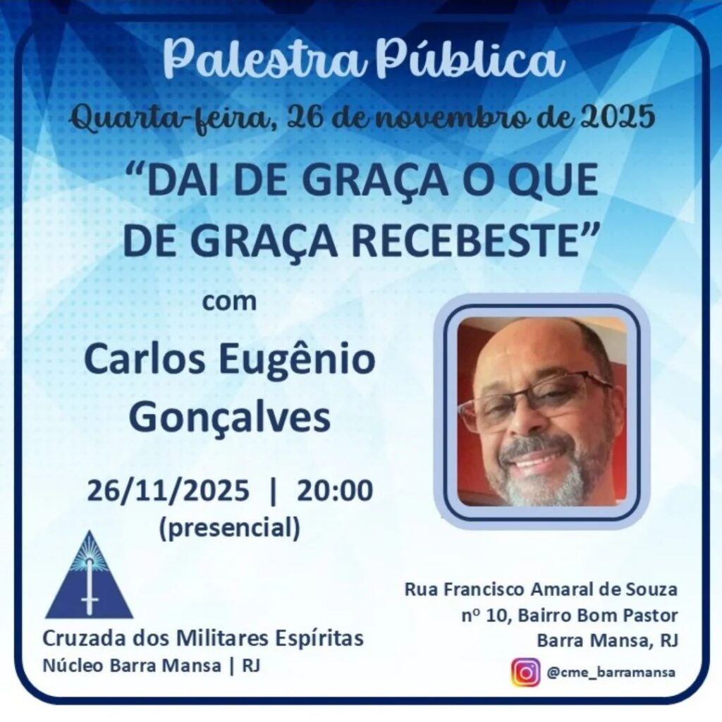 Registro da palestra pública 21/11/202522/11/2025 Carlos Acesse a matéria no Instagram. Conheça a Biblioteca virtual da CME – Clique aqui