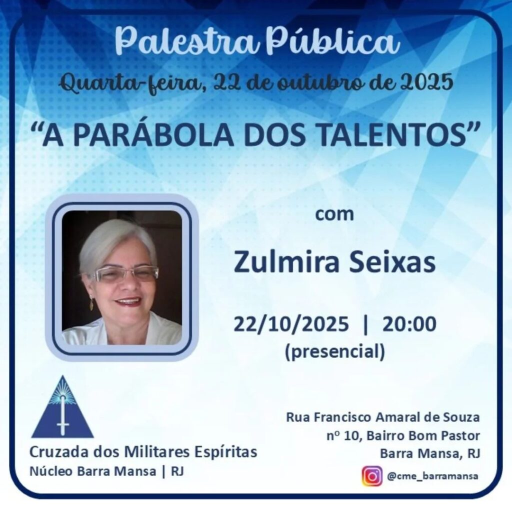 Registro da palestra pública 22/10/202522/10/2025 Carlos Acesse a matéria no Instagram. Conheça a Biblioteca virtual da CME – Clique aqui