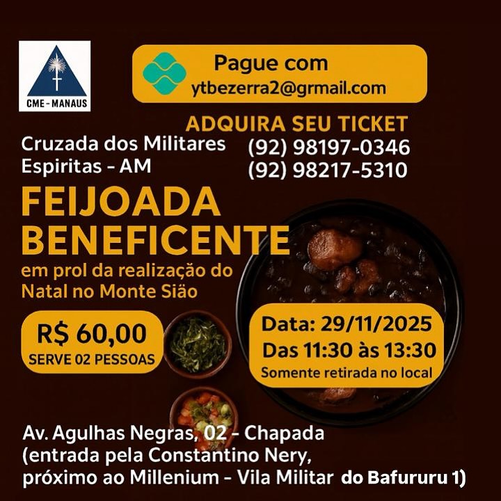 Feijoada Beneficiente 15/11/202518/11/2025 Carlos Acesse a matéria no Instagram. Conheça a Biblioteca virtual da CME – Clique aqui