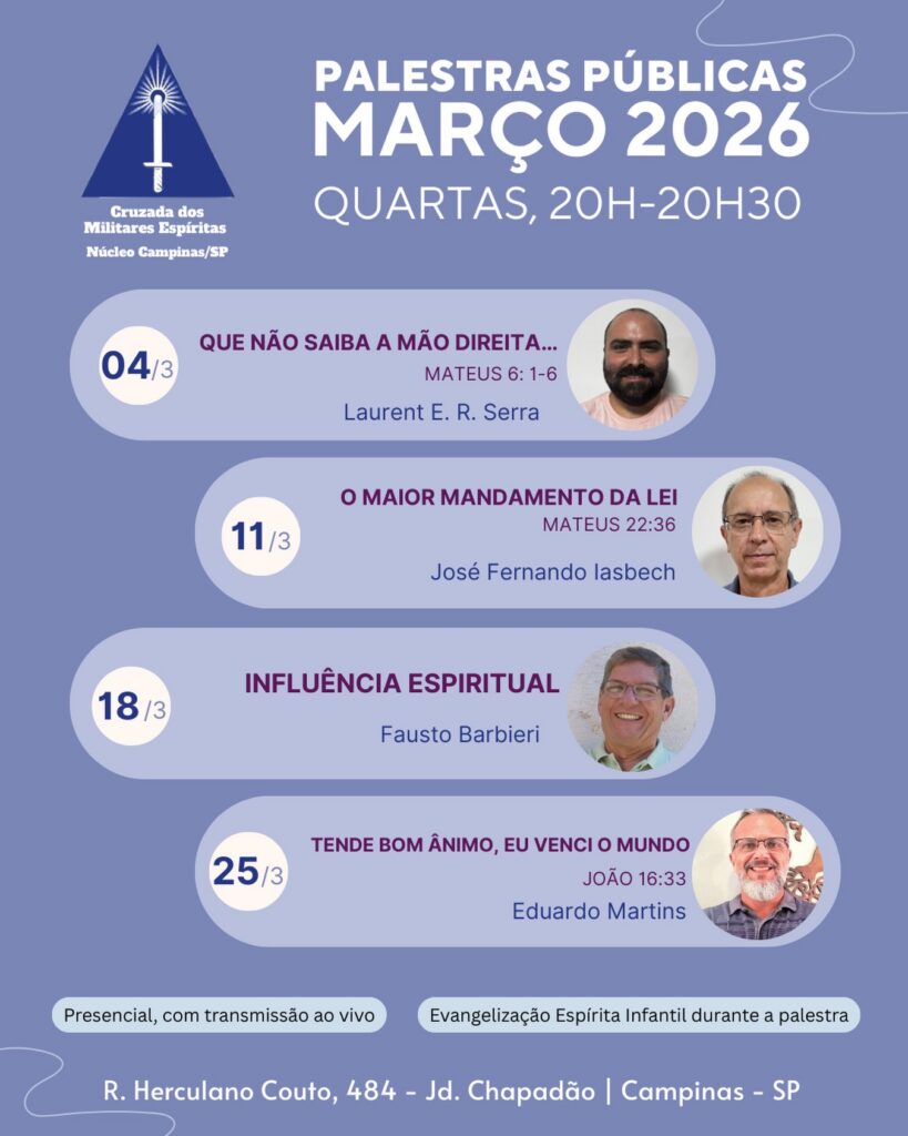 Palestras públicas 14/03/202621/03/2026 Carlos Acesse a matéria no Instagram. Conheça a Biblioteca virtual da CME – Clique aqui