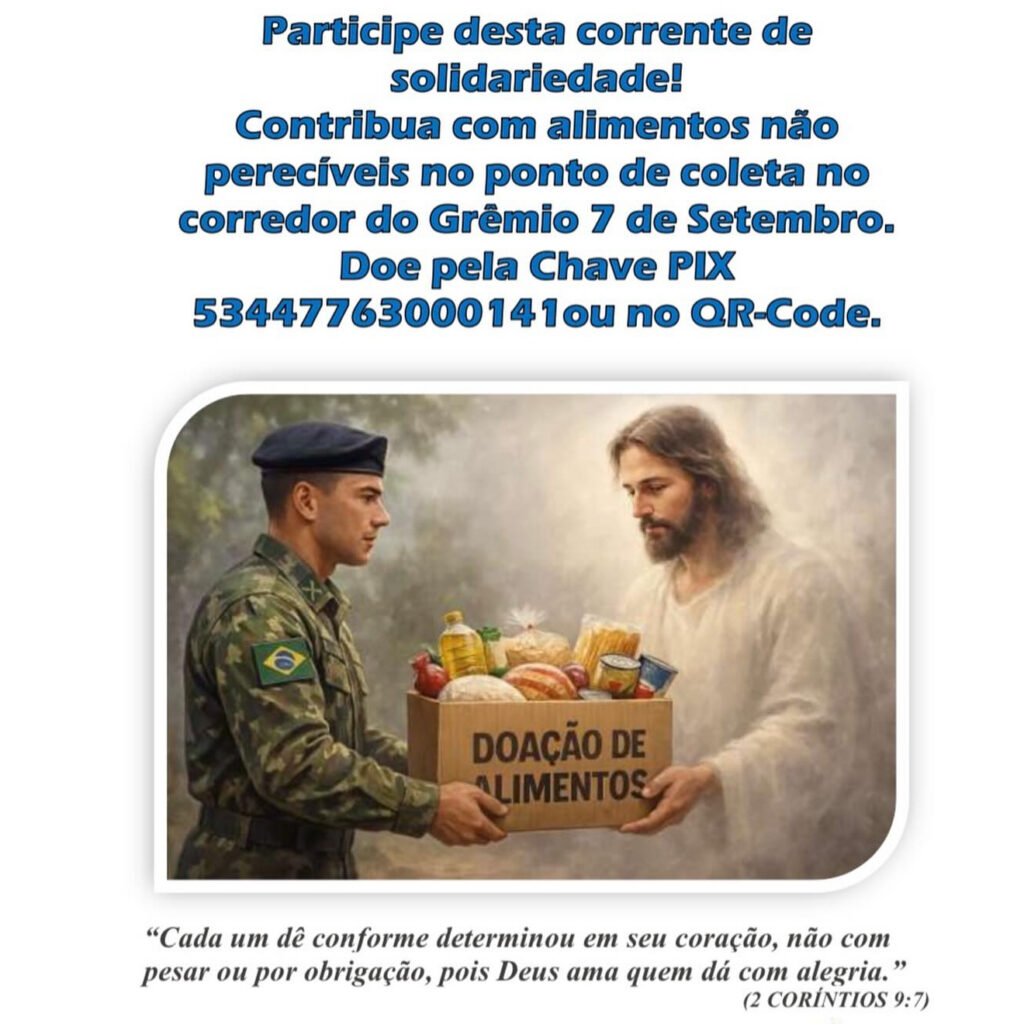 Doe para a montagem de cestas à militares com menor poder aquisitivo 08/11/202510/11/2025 Carlos Acesse a matéria no Instagram. Conheça a Biblioteca virtual da CME – Clique aqui
