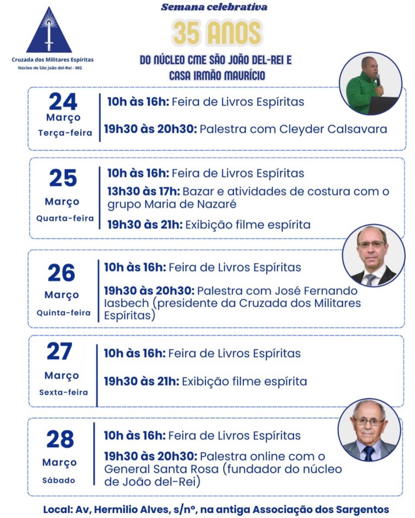 35 anos do Núcleo São João del-Rei e Casa Irmão Maurício 18/03/202620/03/2026 Carlos Acesse a matéria no Instagram. Conheça a Biblioteca virtual da CME – Clique aqui