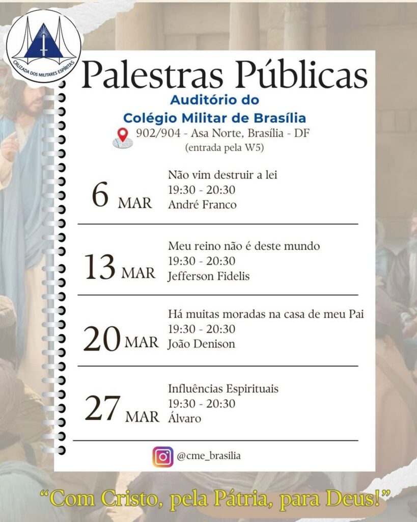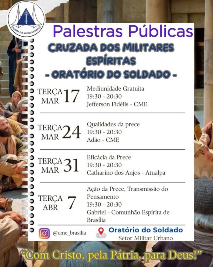 Palestras públicas 16/03/202605/04/2026 Carlos Acesse a matéria no Instagram. Conheça a Biblioteca virtual da CME – Clique aqui