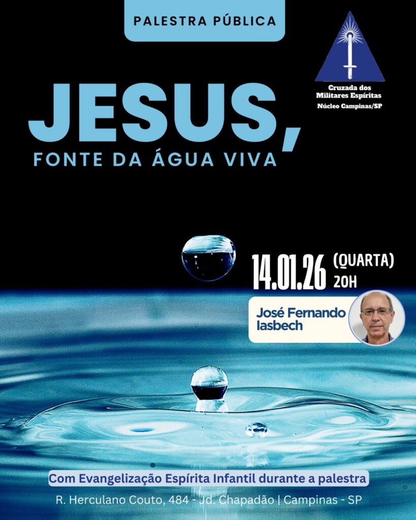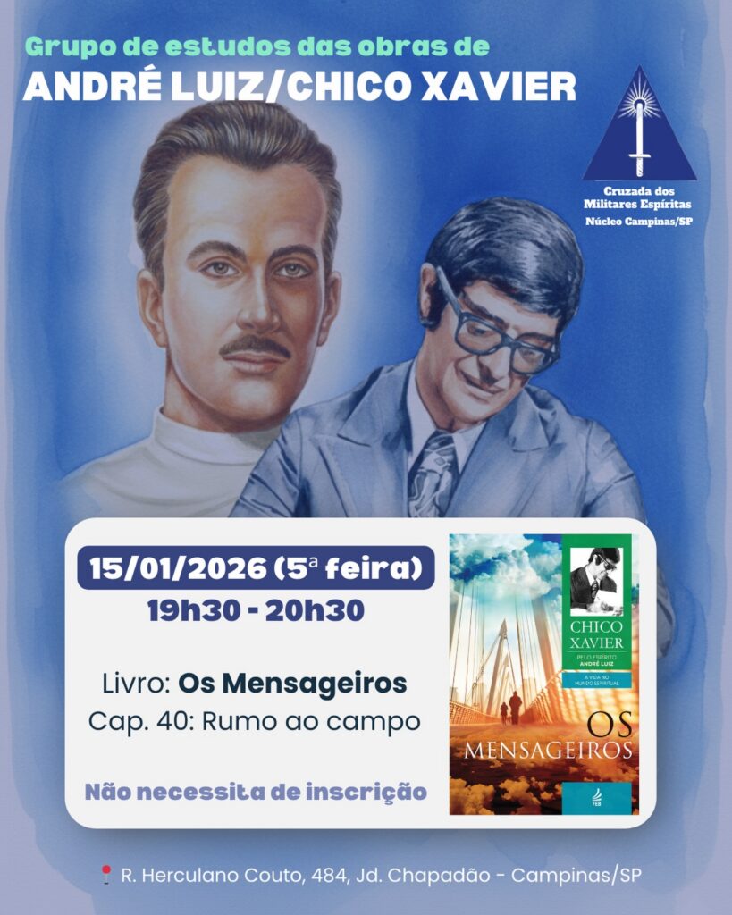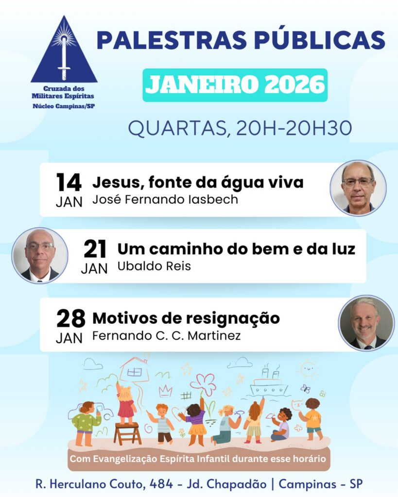 Calendário de palestras públicas 08/01/202612/01/2026 Carlos Acesse a matéria no Instagram. Conheça a Biblioteca virtual da CME – Clique aqui