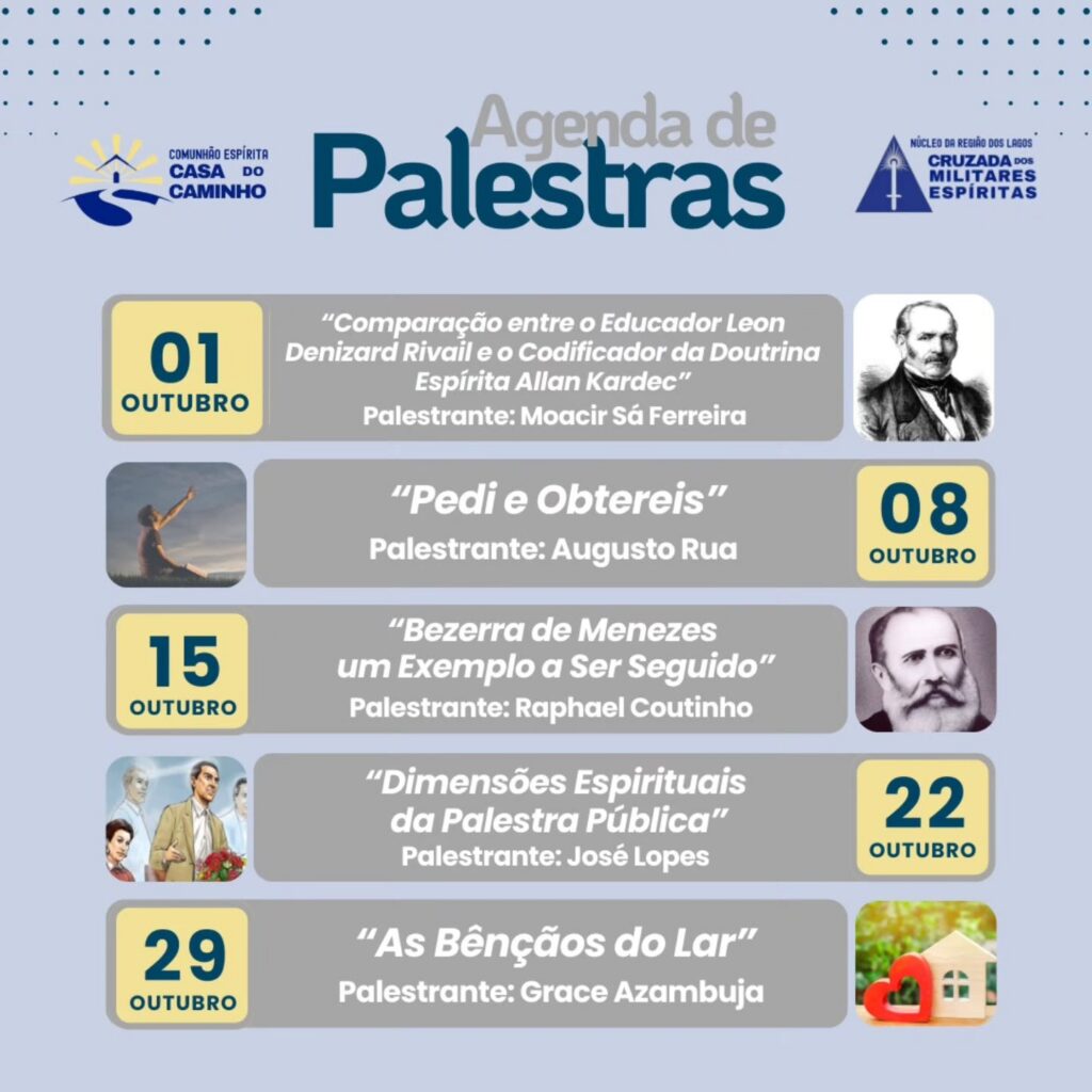 Dia do Nascimento de Allan Kardec 03/10/202503/10/2025 Carlos Acesse a matéria no Instagram. Conheça a Biblioteca virtual da CME – Clique aqui