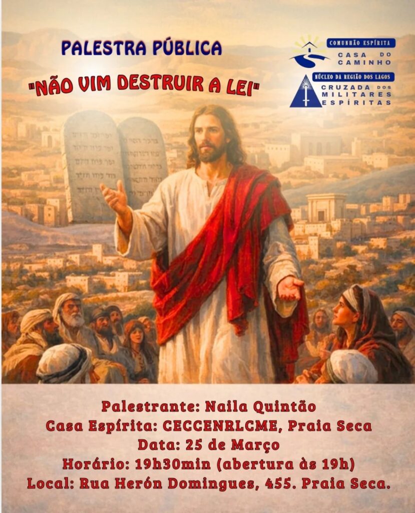 Registro da palestra pública 24/03/202629/03/2026 Carlos Acesse a matéria no Instagram. Conheça a Biblioteca virtual da CME – Clique aqui