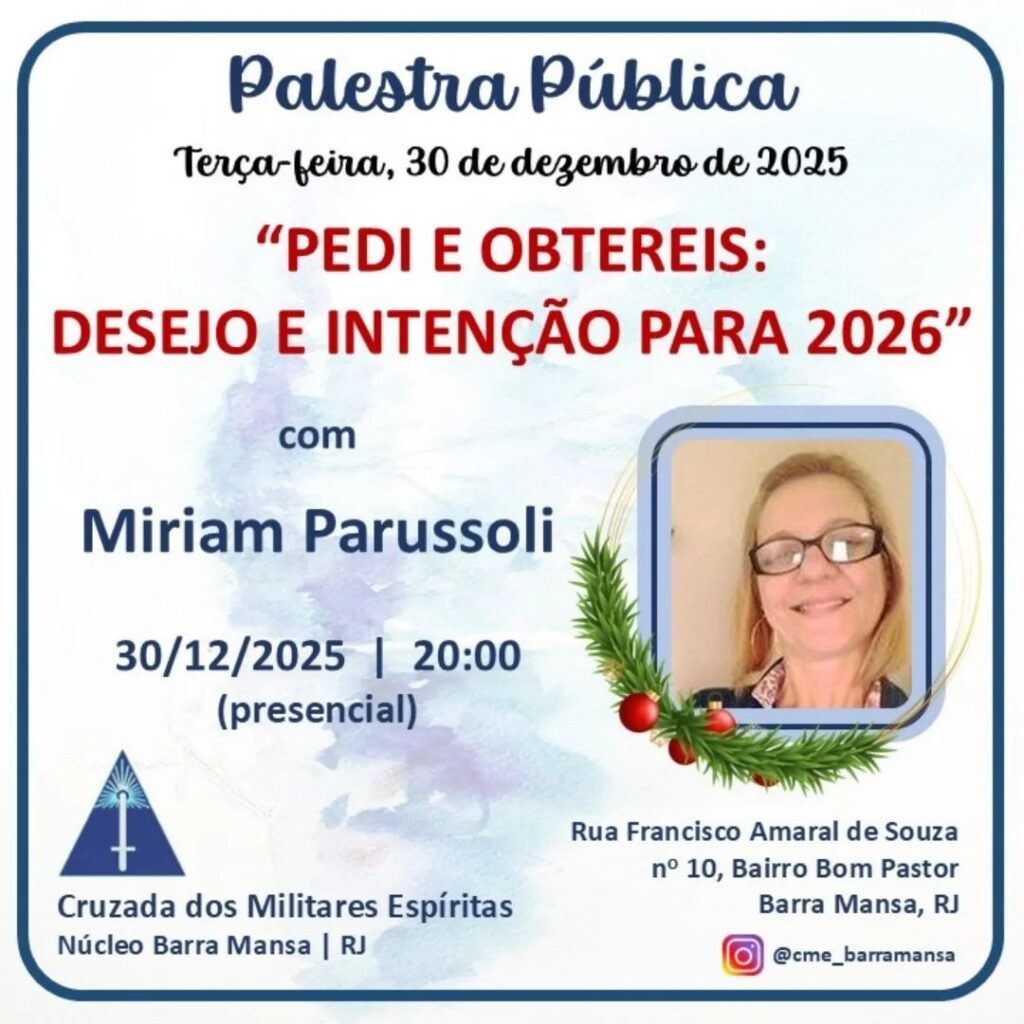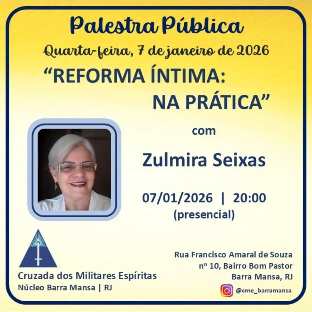 Registro da palestra pública 20/01/202621/01/2026 Carlos Acesse a matéria no Instagram. Conheça a Biblioteca virtual da CME – Clique aqui