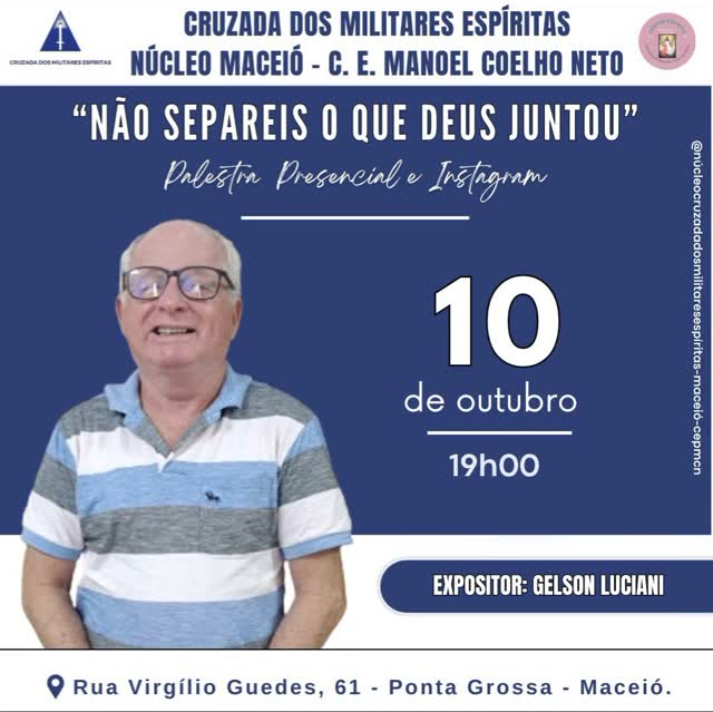 Registro da palestra pública 17/10/202414/09/2025 Carlos Acesse a matéria no Instagram. Conheça a Biblioteca virtual da CME – Clique aqui